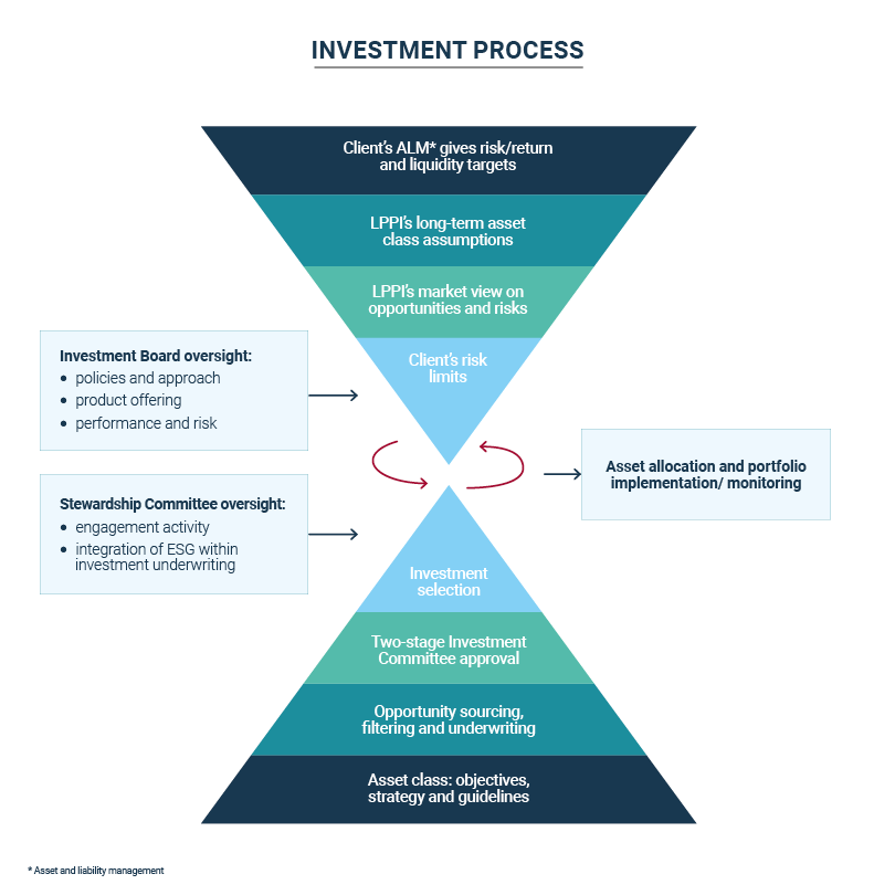 Our partner pension funds set their strategic asset allocation and risk parameters, with full delegation to LPPI to invest within that strategy.