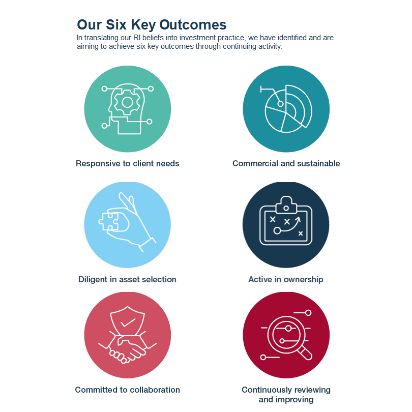 Our responsible investment approach is designed to deliver against the commitments we have made as a signatory to the United Nations backed Principles for Responsible Investment. Our services are fully aligned with the principles of the Financial Reporting Council's UK Stewardship Code.